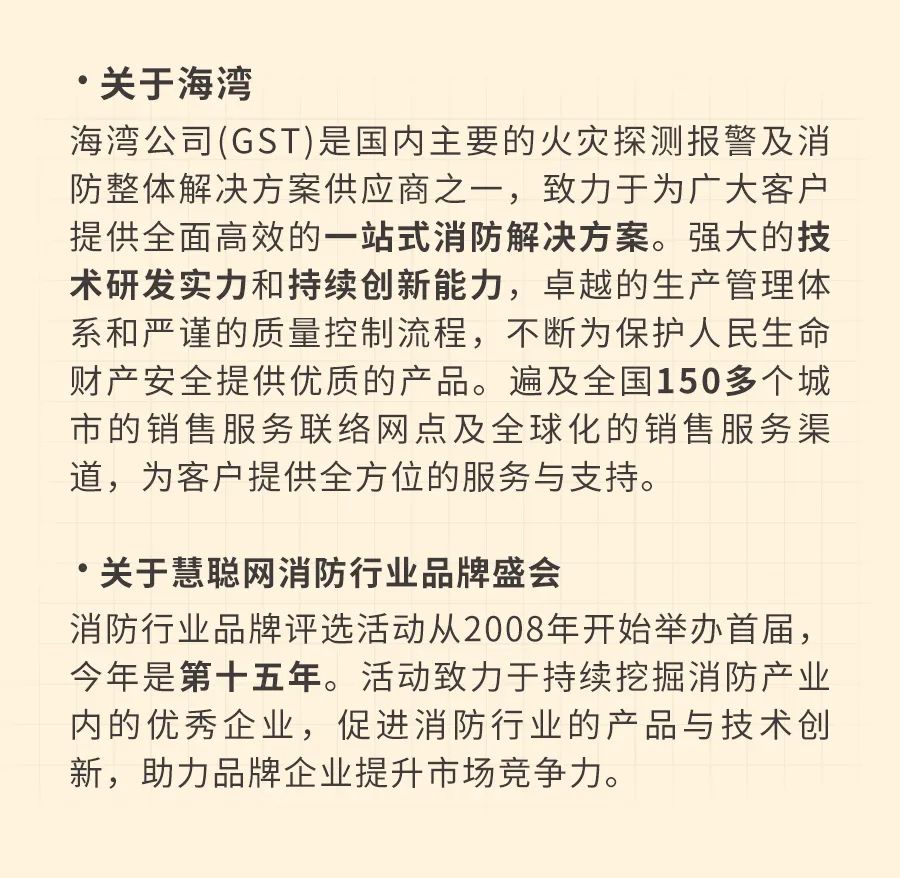 今年,海灣繼續(xù)參與消防十大報(bào)警品牌、消防十大智能疏散品牌兩個(gè)重磅獎(jiǎng)項(xiàng)的評(píng)選。